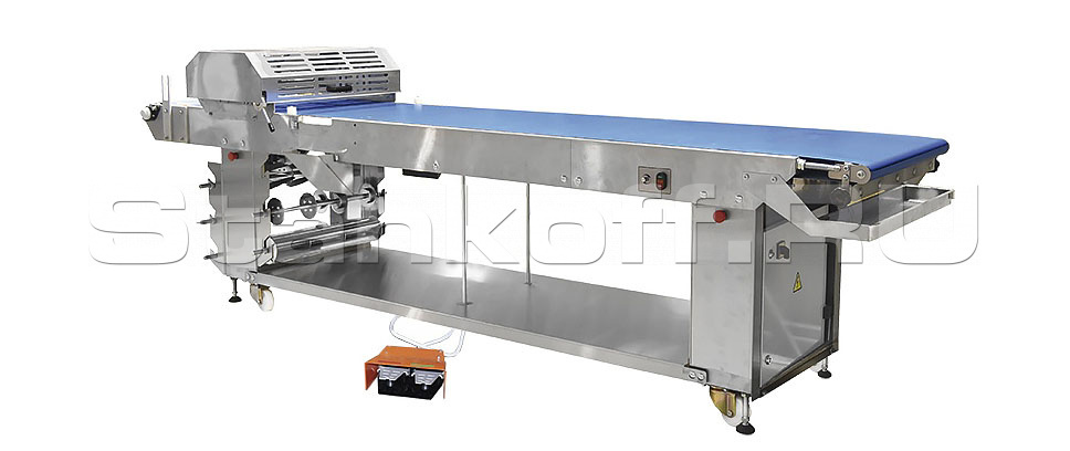 - Управление пуском и остановкой транспортера возможно как при помощи кнопок, установленных на корпусе стола, так и при помощи педали, что позволяет облегчить работу и увеличить производительность;