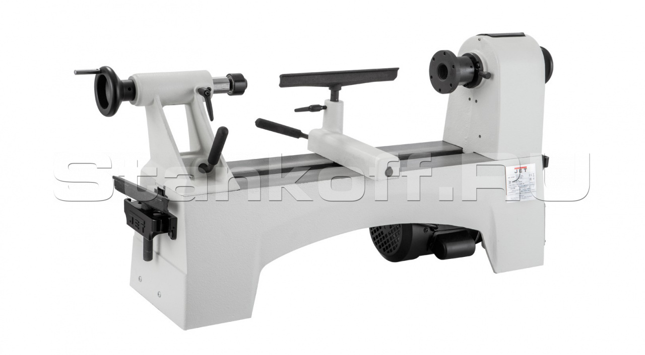 Токарный станок по дереву JET JWL-1221 — классический токарный станок профессионального класса для работы с заготовками небольшого диаметра. В базовом комплекте поставки предназначен для настольного размещения, после доукомплектования подставкой может эксплуатироваться и как напольный. Для увеличения межцентрового расстояния можно на 560 мм удлинить станину приставной секцией (опция арт. 719201), под нее также предлагается и удлинение подставки.