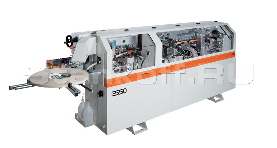Автоматический кромкооблицовочный станок E550 — предназначен для облицовывания прямолинейных кромок плитных материалов полосовым и рулонным кромочным материалом и последующей обработкой кромки за один проход.