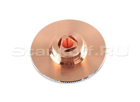 Используется в качестве электрода для корректной работы датчика слежения за поверхностью, а также для подачи лазерного излучения и режущего газа (опционально) в зону обработки. Срок службы зависит от условий эксплуатации. Все сопла Raytools характеризуются прочностью и надежностью. Сопловая часть лазерной головки состоит из керамического держателя и непосредственно сопла. Эта часть обеспечивает соосность лазерного излучения и струи газа. Во всех соплах используется функция центровки, которая позволяет быстро изменять и выравнивать положение сопла. Одинарные сопла используются для резки тонкого материала, нержавеющей стали и алюминия. Для полного охвата диапазона толщины сопла имеют диаметр в диапазоне от 0,8 мм до 10 мм.