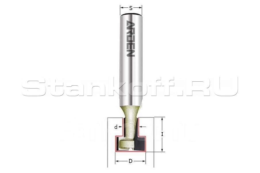 Фреза для Т-образных пазов ARDEN используется вместе со специальными станками и машинками в целях получения соединений для элементов корпусной мебели ящичного, углового, а также Т-образного типа. Фреза для обработки Т-образных пазов отличается высоким качеством. Представленная фреза для Т-образных пазов изготовлена из устойчивой к износу и коррозии стали, имеет защитное покрытие, которое минимизирует риск перегрева, налипания, а также увеличивает ресурс инструмента.