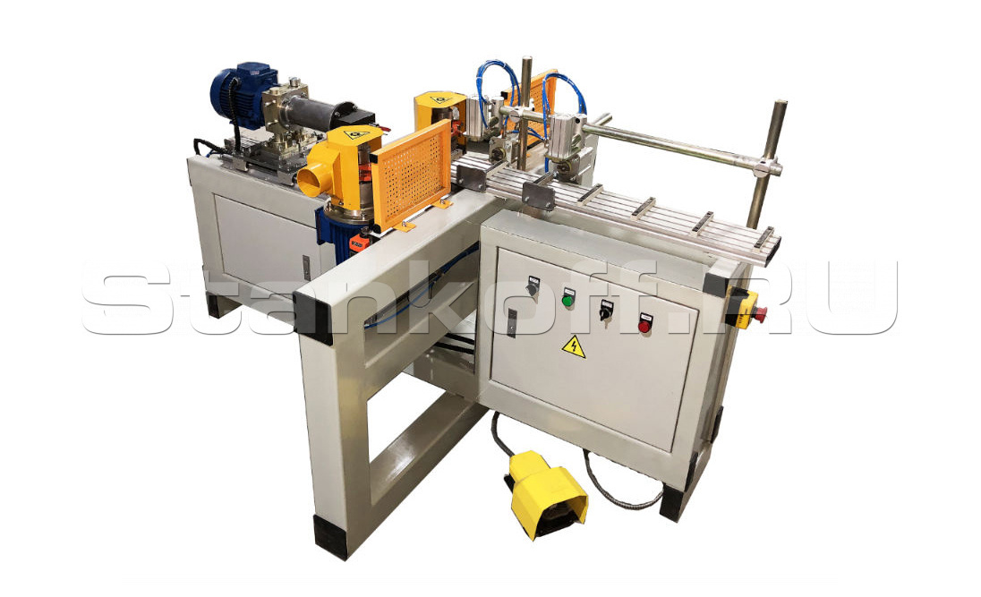 Станок оснащен двумя фрезерными агрегатами и одним сверлильным узлом, оснащенный трехшпиндельной сверлильной головкой с шагом 32мм.