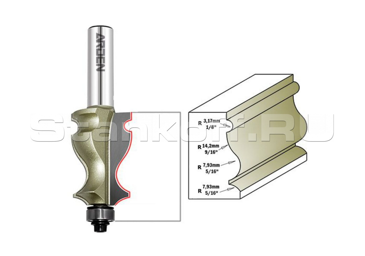 Фреза для карниза мультипрофильная позволяет создать необычный, оригинальный карниз из МДФ высокого качества. Данное оборудование активно используется как для работы с обычными станками, так и для ЧПУ. Фреза незаменима для изготовления деревянных фигурных деталей, багетов, отличается высокой производительностью, точностью, качеством. Инструмент по дереву произведен из износостойкой стали, который выдерживает большие нагрузки, надежно защищен от смолы, клея и пыли.