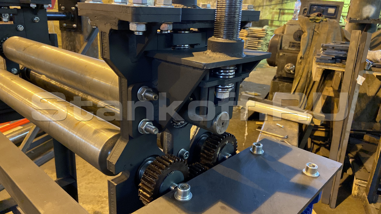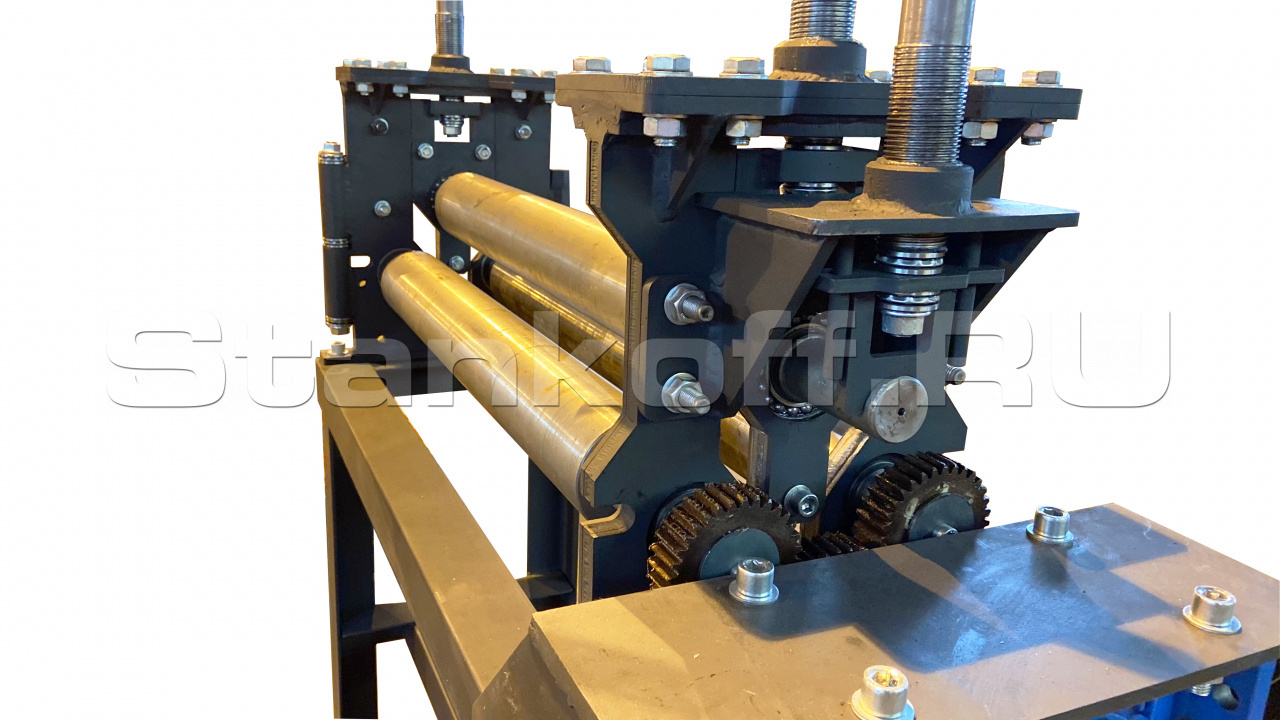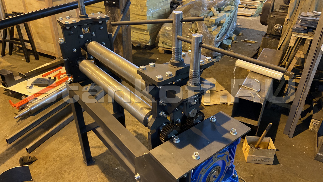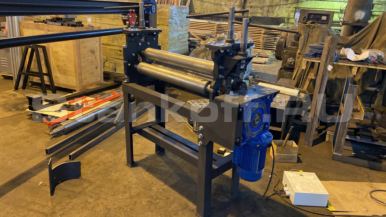 Вальцовочное оборудование электро привода собственного производства. Вальцы с параметрами: толщина металла от 0.35 до 4 мм. Трехвалковые. Рабочая длина 550 В изготовлении вальцовочных машин используются цельнометаллические валы, игольчатые подшипники в обоймах не требующие обслуживания и дополнительной смазки на всех движущихся элементах. Конструкция станков из цельного металла полностью разборная и ремонтопригодная.
