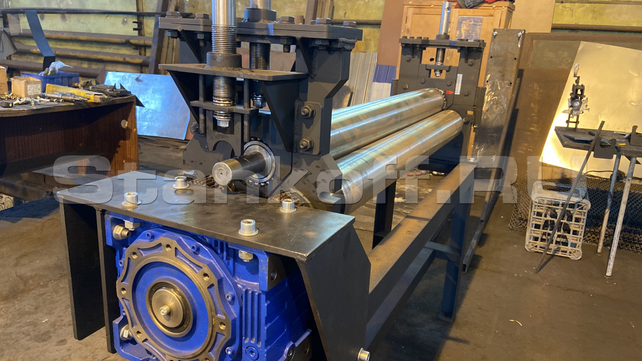 Вальцовочное оборудование электро привода собственного производства. Вальцы с параметрами: толщина металла от 0.35 до 4 мм. Трехвалковые. Рабочая длина 2500 В изготовлении вальцовочных машин используются цельнометаллические валы, игольчатые подшипники в обоймах не требующие обслуживания и дополнительной смазки на всех движущихся элементах. Конструкция станков из цельного металла полностью разборная и ремонтопригодная.