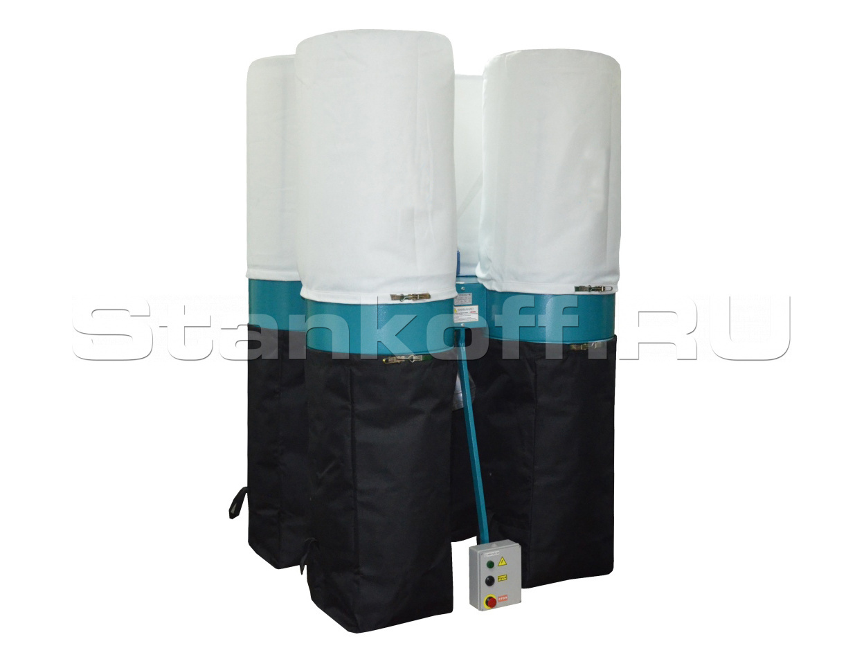 Установка осуществляет удаление стружек, опилок, пыли от оборудования путем их отсоса из зоны резания, дальнейшую фильтрацию воздуха и накопление отходов в специальном мешке – накопителе. Максимальная длина удаляемых элементов (стружек, опилок, щепок) не должна превышать 45 мм.