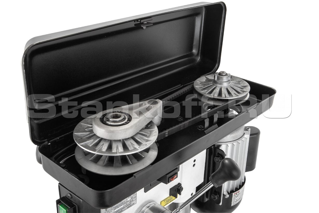 Настольный сверлильный станок JET JWDP-10 — это настольный сверлильный станок с вариатором для работы в небольших мастерских с деревом, металлом и другими материалами. Его конструкция базируется на узлах и деталях профессиональной модели JWDP-12, но имеет ряд отличий: уменьшены общие размеры, изменено устройство стола, использован ключевой патрон и т.п. Эти меры позволили снизить стоимость при сохранении основных достоинств: частота вращения шпинделя меняется простым перемещением рычага управления, установленная скорость отображается на цифровом дисплее, штатная комплектация включает в себя лазерный указатель оси сверления, рабочий стол имеет Т-образные пазы для крепления тисков и прихватов, предусмотрена работа от основания.