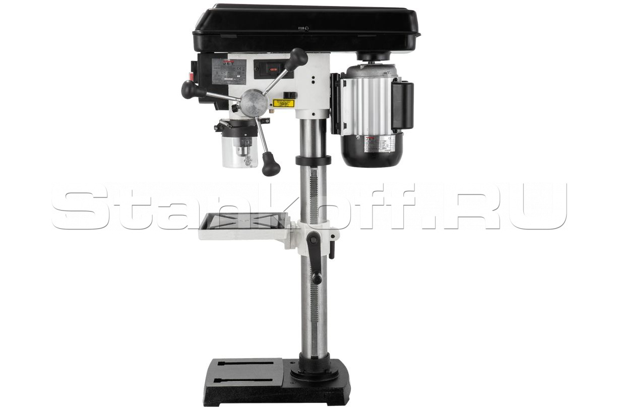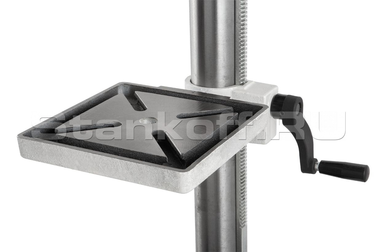 Механизм подачи пиноли имеет лимб (круговую шкалу с миллиметровой разметкой), совмещенный с ограничителем глубины сверления. Полный ход сверла производится за один оборот рукоятки. Рабочий стол регулируется по высоте и по углу наклона, а также поворачивается вместе с кронштейном вокруг колонны.