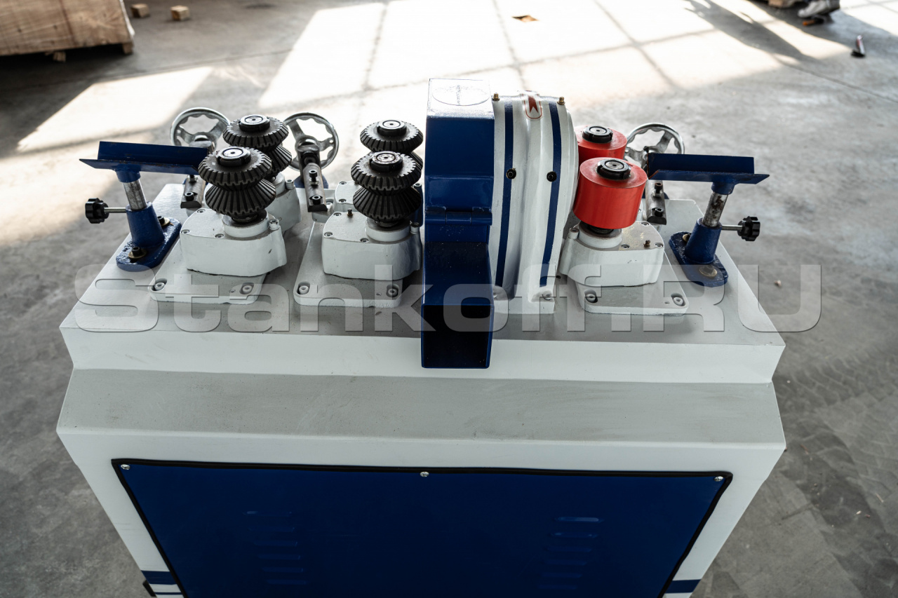 Подающие вальцы специальной формы выполнены рифлеными для надежного захватывания заготовки и подачи к режущему инструменту.На выходе заготовку протягивает пара обрезиненных цилиндрических роликов, полностью исключая ее повреждение.
