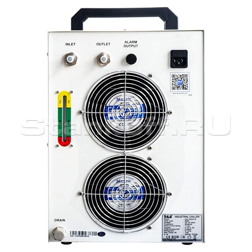 Чиллер CW-5000TG S&A для охлаждения лазерной трубки – это обновленная версия предыдущей модели чиллера CW-5000AG. Чиллер CW-5000TG S&A обладает теми же техническими характеристиками, что и модель-предшественник, однако имеет ряд внешних отличий в дизайне, что Вы можете видеть на фотографии к товару. Кроме того, изменилась буквенная маркировка – с AG на TG.