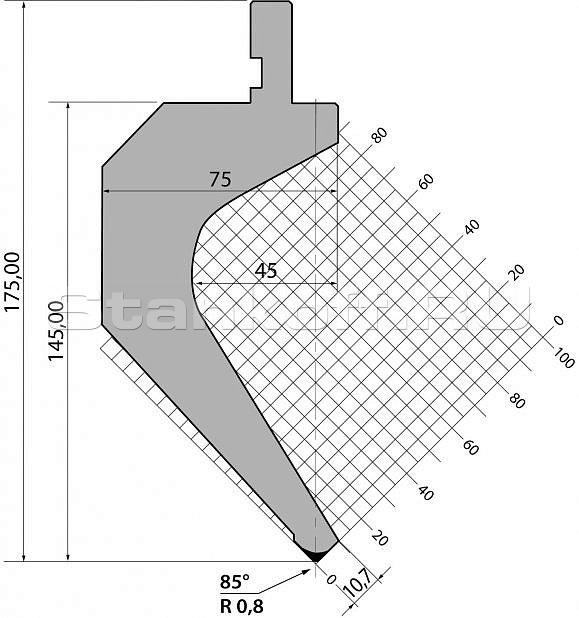 | Технические характеристики пуансона для листогибочных прессов TOP.175.85.R08.500s |