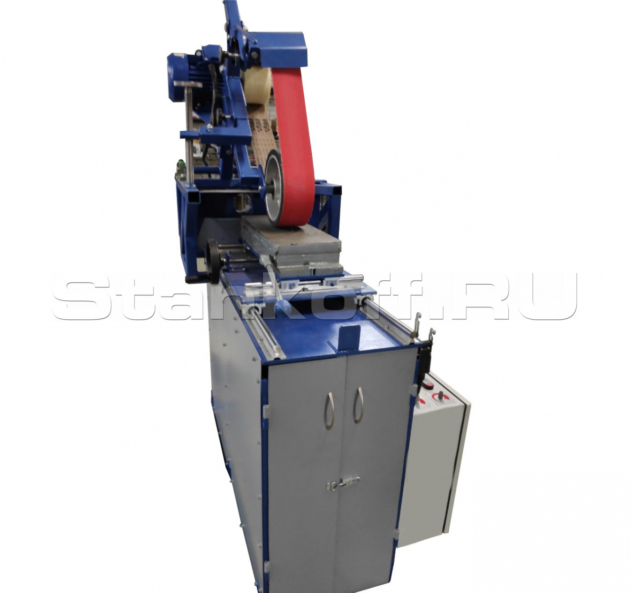 Спроектирован для работы с бесконечной шлифовальной лентой длиной 2000 мм на ширину 50 мм, которая позволяет использовать станок в промышленных целях, для тяжелых условий эксплуатации, абразив на ленте успевает охладиться, дольше служит и не перегревает обрабатываемую деталь.