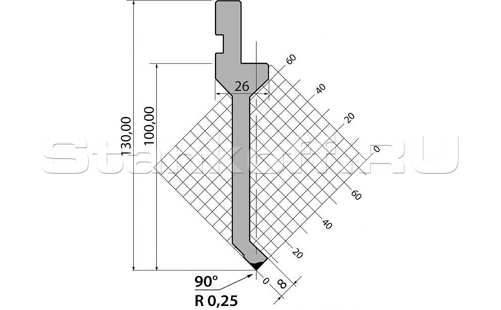 | Технические характеристики пуансона R1 классический P.130.90.R025.805s |