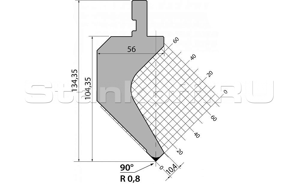 Пуансон гусевидного типа. Предназначен преимущественно для гибки деталей с маленькими и средними полками из различных вариантов толщин листового металла. Изготовлен из качественной конструкционной стали C45:560-710 N/mm².