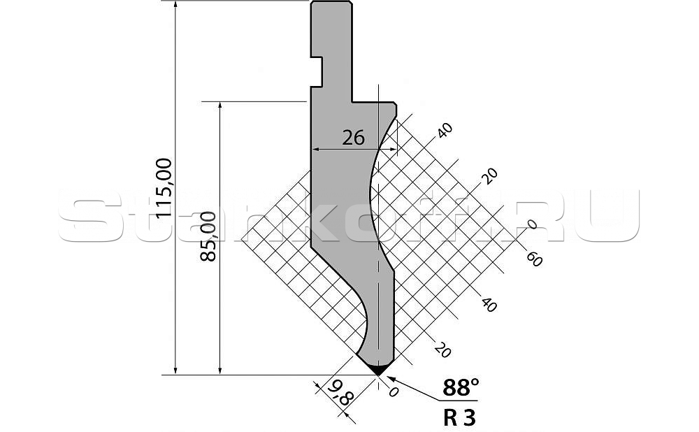 | Технические характеристики пуансона для листогибочных прессов D.116.88.R3.805s |
