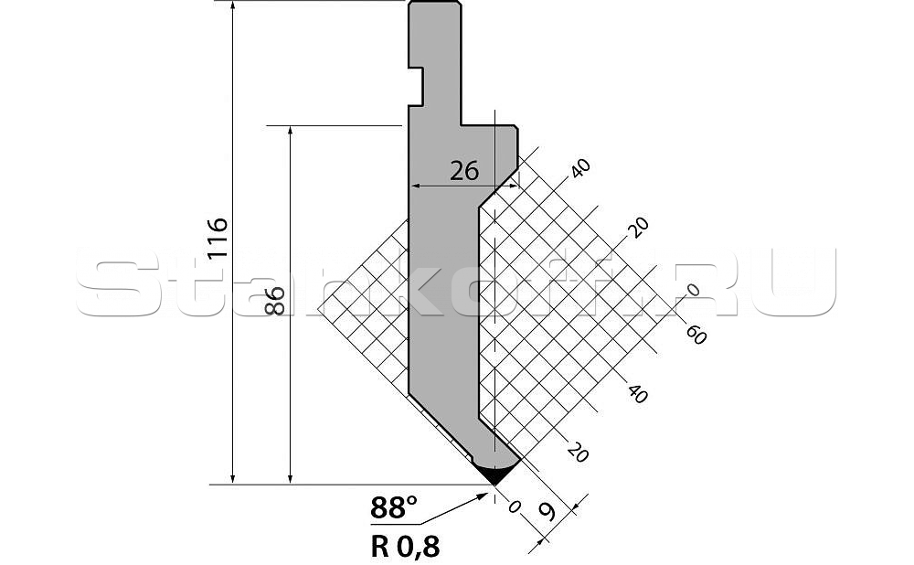 | Технические характеристики пуансона для листогибочных прессов P.116.88.R08.795s |