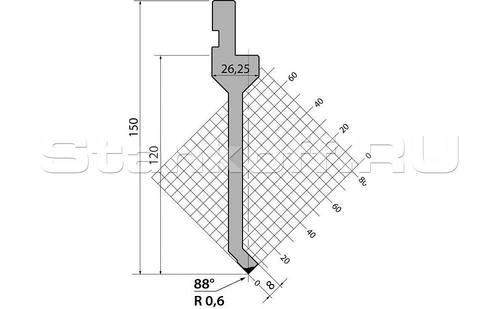 | Технические характеристики пуансона для листогиба P.150.88.R06.795s |