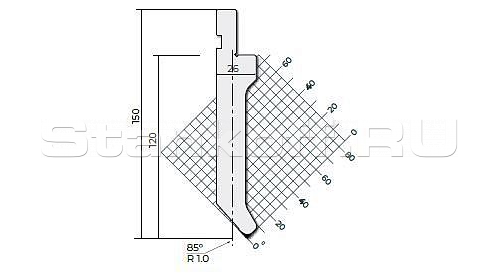 Н (высота), 150. Радиус гиба, 1. Градус гиба, 85. Тоннаж, 700. Материал, C45:560-710 N/mm².