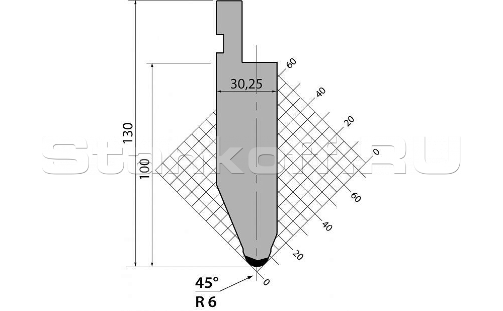 Н (высота), 130. Радиус гиба, 6. Градус гиба, 45. Тоннаж, 1000. Материал, C45:560-710 N/mm².