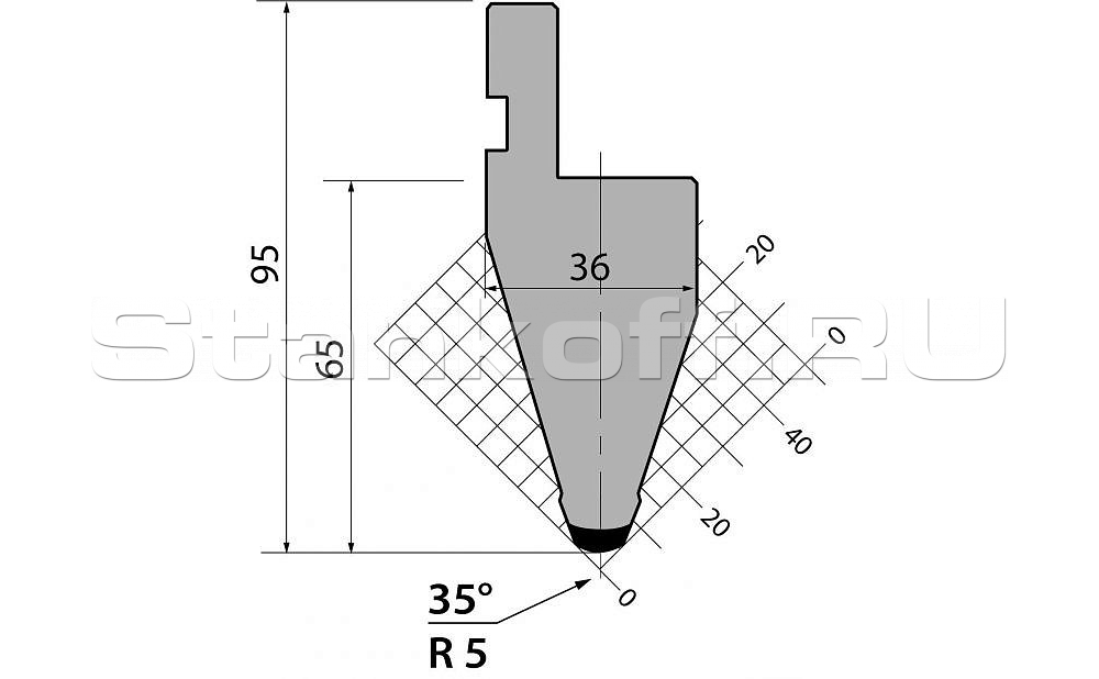 Н (высота), 95. Радиус гиба, 5. Градус гиба, 35. Тоннаж, 1000. Материал, C45:560-710 N/mm².