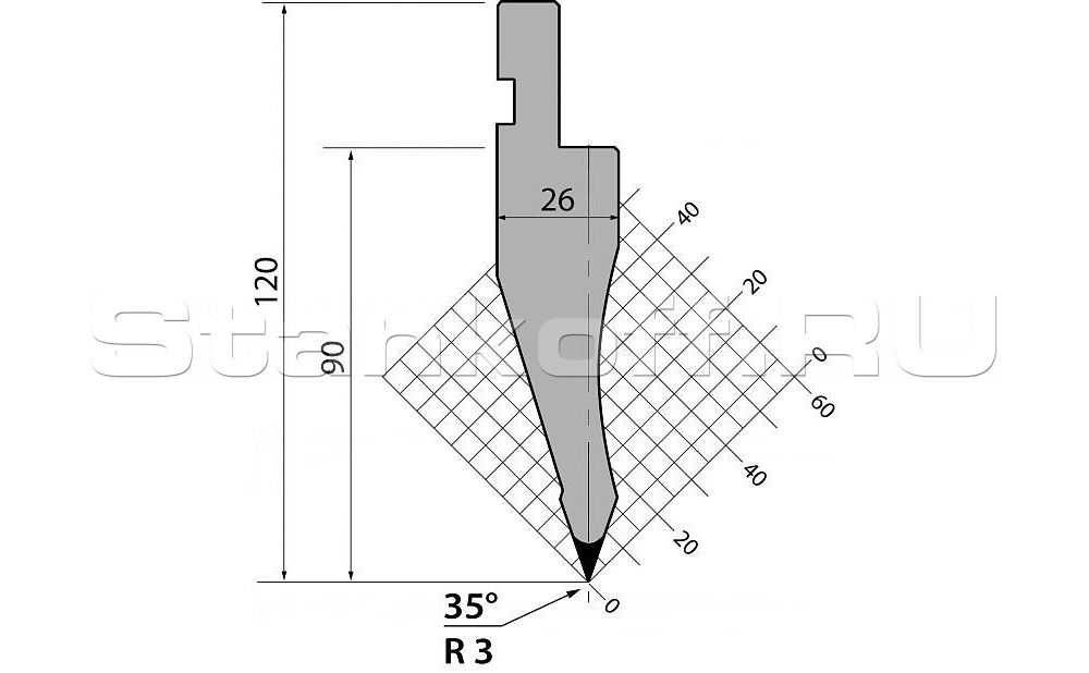 Н (высота), 120. Радиус гиба, 3. Градус гиба, 35. Тоннаж, 700. Материал, C45:560-710 N/mm².
