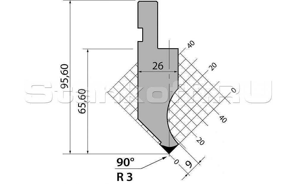 Н (высота), 95. Радиус гиба, 3. Градус гиба, 90. Тоннаж, 1000. Материал, C45:560-710 N/mm².