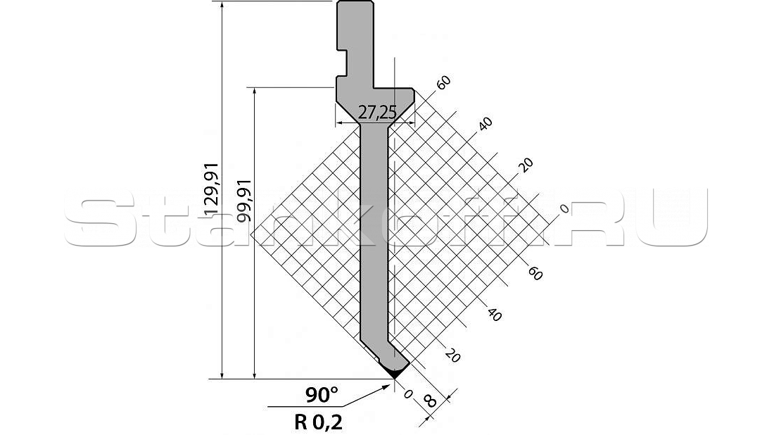 Н (высота), 130. Радиус гиба, 0.2. Градус гиба, 90. Тоннаж, 300. Материал, 42Cr:900-1150 N/mm².