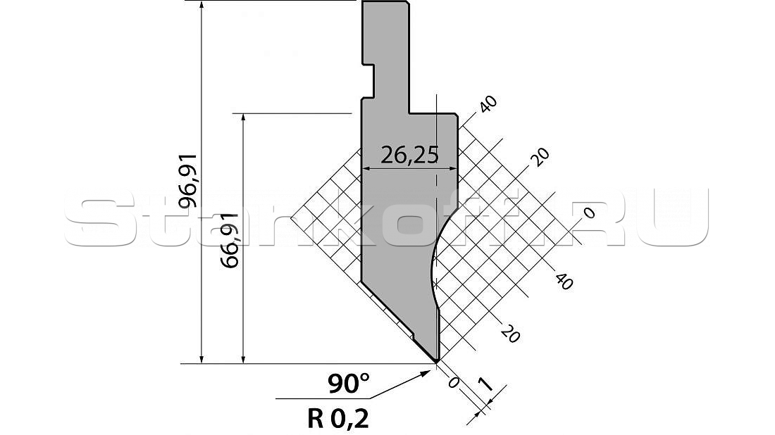 Н (высота), 97. Радиус гиба, 0.2. Градус гиба , 90. Тоннаж, 800. Материал, C45:560-710 N/mm².