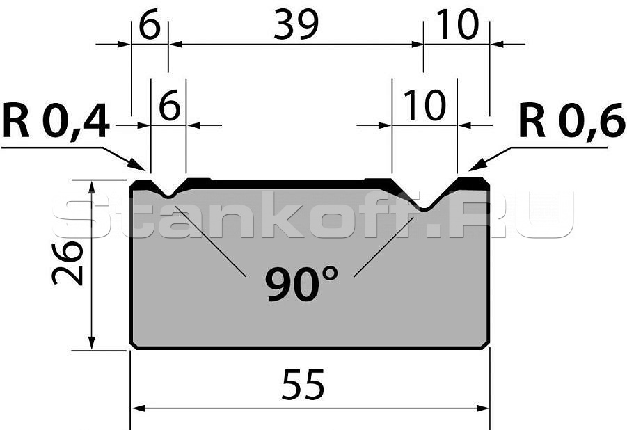 Н (высота), 26. Градус гиба, 90. Тоннаж, 1000. Материал, C45:560-710 N/mm².