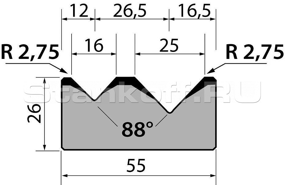 Н (высота), 26. Градус гиба, 88. Тоннаж, 1000. Материал, C45:560-710 N/mm².
