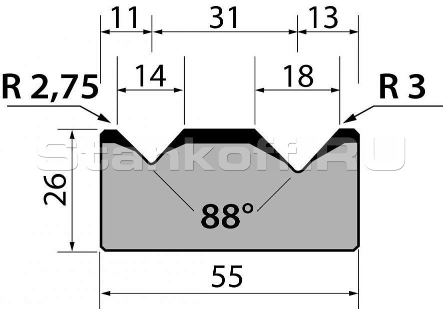 Н (высота), 26. Градус гиба, 88. Тоннаж, 1000. Материал, C45:560-710 N/mm².