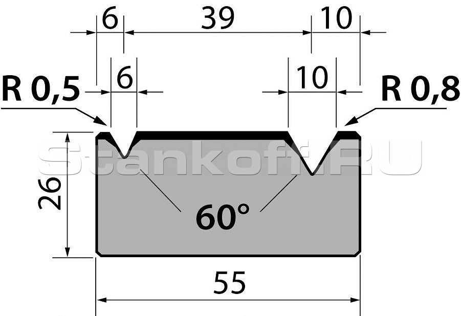 Н (высота), 26. Градус гиба, 60. Тоннаж, 600. Материал, C45:560-710 N/mm².