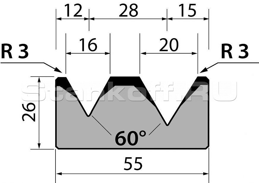 Н (высота), 26. Градус гиба, 60. Тоннаж, 800. Материал, C45:560-710 N/mm².