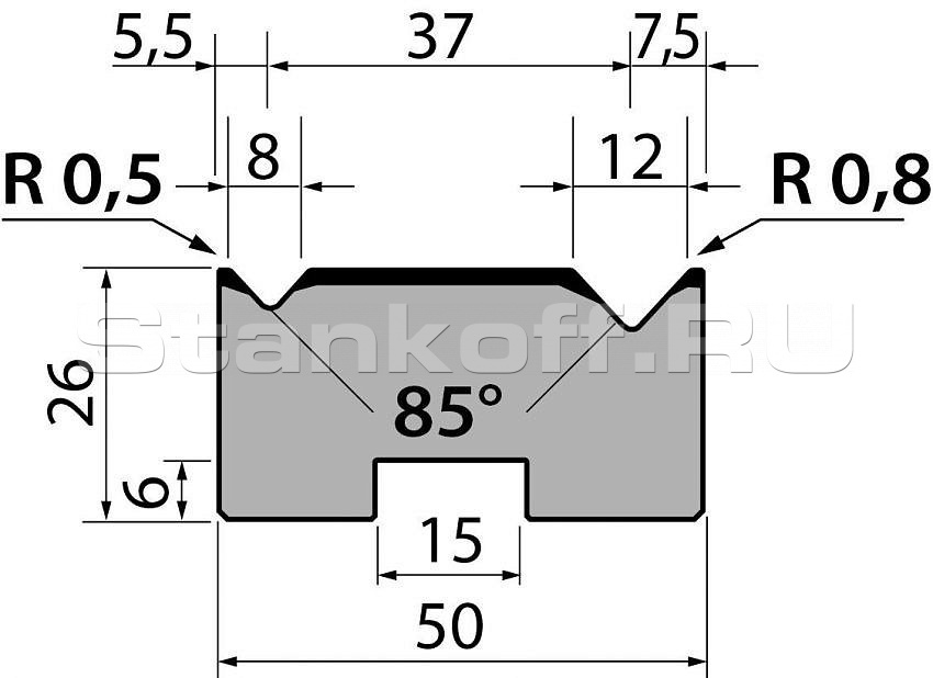 Н (высота), 26. Градус гиба, 85. Тоннаж, 1000. Материал, 42Cr:900-1150 N/mm².
