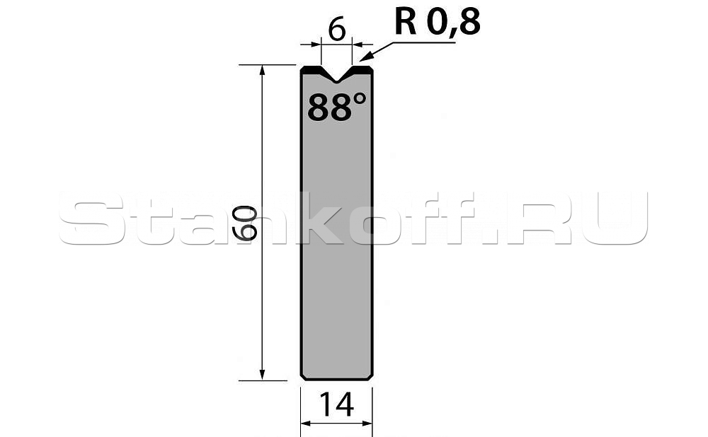 Н (высота), 60. Градус гиба, 88. Тоннаж, 1000. Материал, C45:560-710 N/mm².