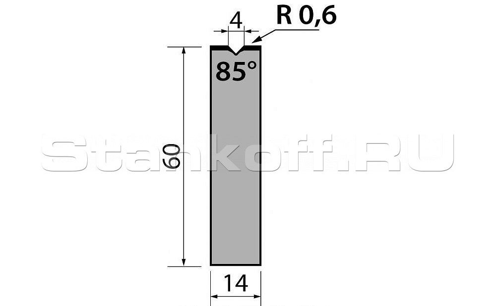 Н (высота), 60. Градус гиба, 85. Тоннаж, 1000. Материал, C45:560-710 N/mm².