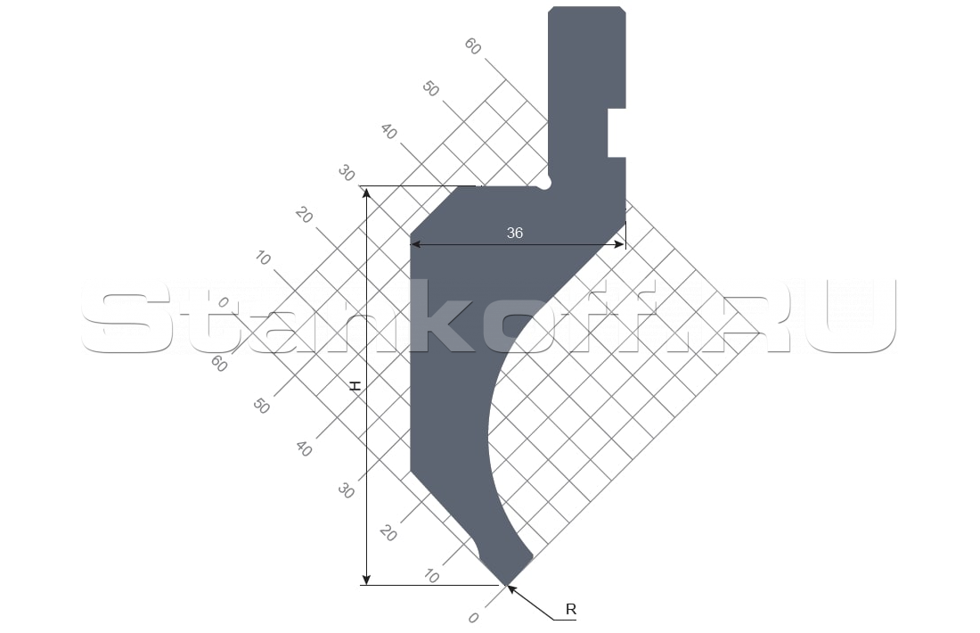 Угол, 85°. Радиус, 0,8 мм. Высота, 66,65 мм. Max нагрузка, 60 т/м. Материал, 42CrMo4.