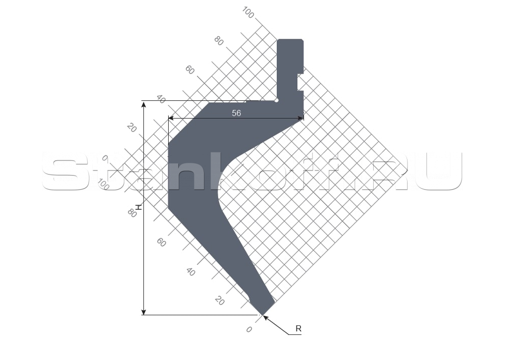 Угол, 85°. Радиус, 0,8 мм. Высота, 104.65 мм. Max нагрузка, 30 т/м. Материал, 42CrMo4.