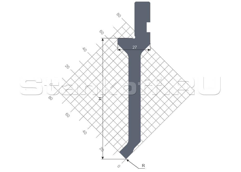 | Технические характеристики гибочного пуансона STP 202 88 R0.8 835 |