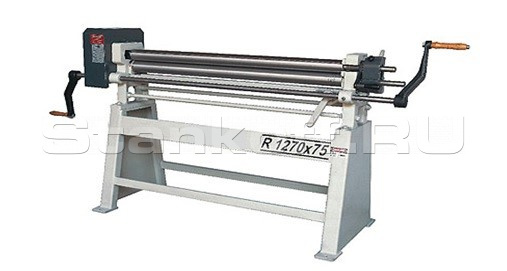 Настройка параметров, зажим заготовок и вращение валков производится оператором вручную. Величина регулируемого зазора между нижними валами и прижимным валом зависит от толщины изгибаемого листа. Минимальный диаметр изделия превышает диаметр верхнего вала в 1,5 раза.