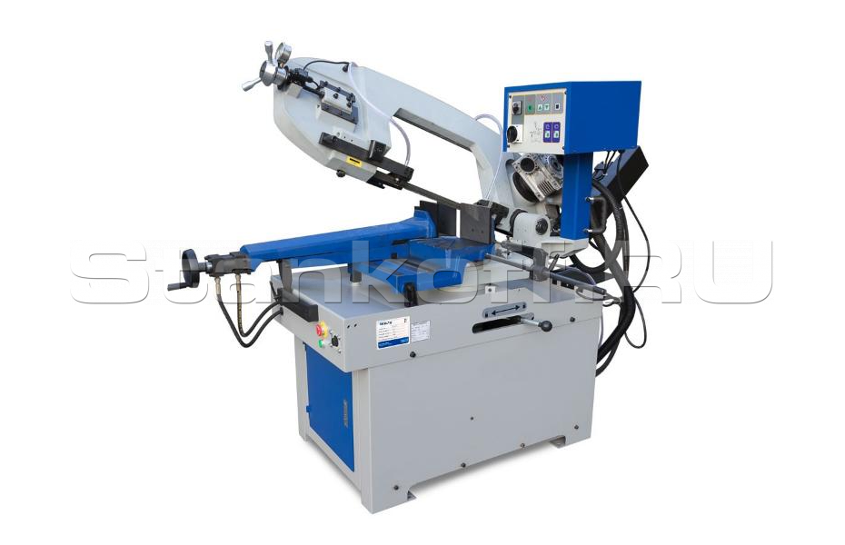 Двухточечная подача СОЖ, значительно повышает качество резки, а также способствует более эффективному отводу стружки из зоны резания, что препятствует преждевременному износу режущего полотна.Преимущества полуавтоматического ленточнопильного станка