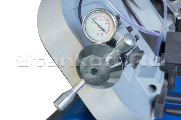 Натяжение ленточнопильного полотна осуществляется удобным вентилем, степень натяжения видна и контролируется на специальном индикаторе.