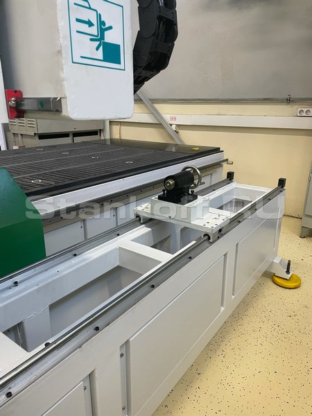Ось вращения для обработки балясин. Максимальный диаметр заготовки - 300 мм. Длина заготовки максимальная - 1500 мм. Поставляется с трехкулачковым патроном и задней бабкой, перемещающейся по направляющим. Поддерживается полноценная четырех-осевая обработка.