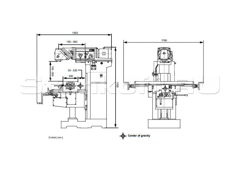 | Вылет вертикального шпинделя | 150-550 мм |