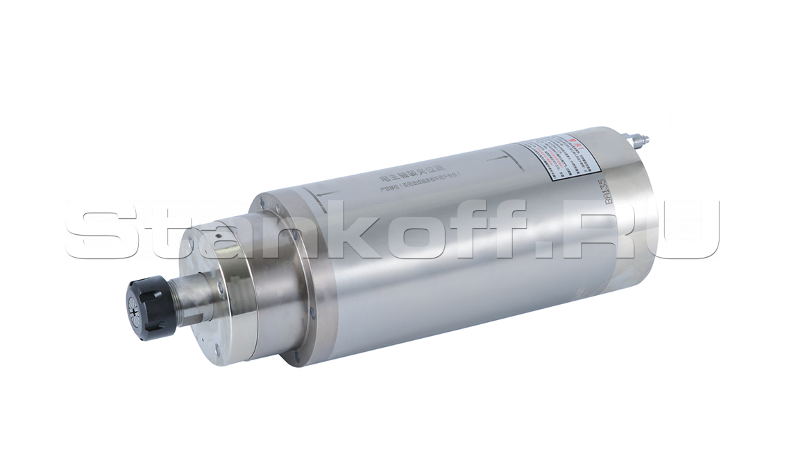 Электрошпиндель предназначен для применения в качестве главного привода фрезерных станков. Шпиндель для фрезерных станков — это высокоскоростной электродвигатель, рабочий вал которого оснащается устройством для закрепления заготовки режущего инструмента (у сверлильных, фрезерных, гравировальных станков). К шпинделю с жидкостным охлаждением для станков чпу предъявляются повышенные требования по равномерности вращения, непосредственно влияющей на качество обработки. Рабочий вал шпинделя устанавливается на подшипниках качения или скольжения высокого класса точности.