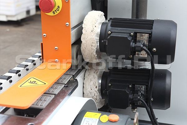 Полировальный узел служит для очистки обработанной части кромки, придания ей естественного цвета и блеска. Удобная регулировка позволяет настроить на любой угол полировальные круги относительно обработанной кромки детали.