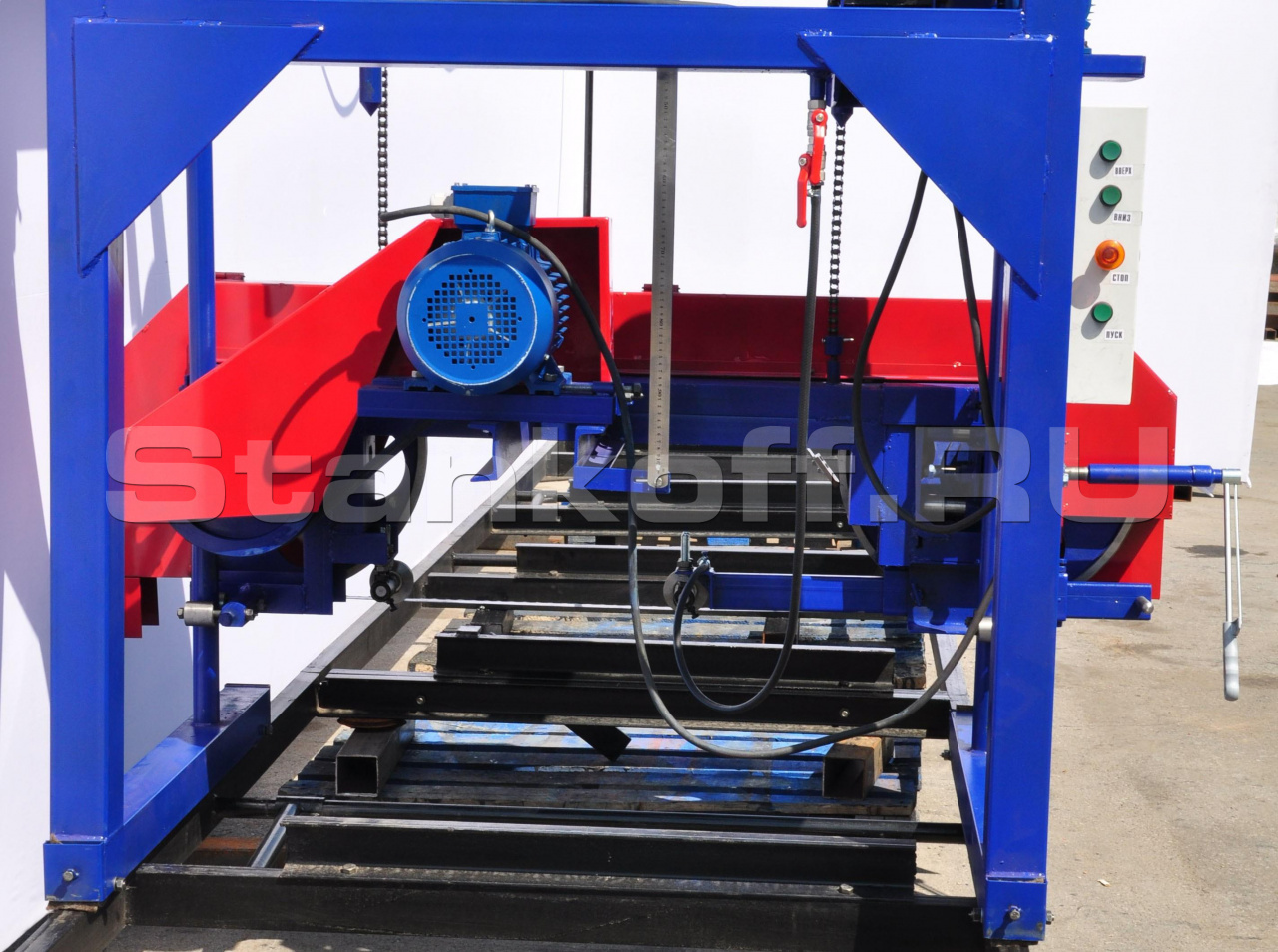 Станок предназначен для 3х часовой всепогодной работы: защищённый мощный электропакет и конструкторский расчёт позволяют эксплуатировать данную пилораму в любой сезон при любой погоде и на улице, и в любых помещениях.