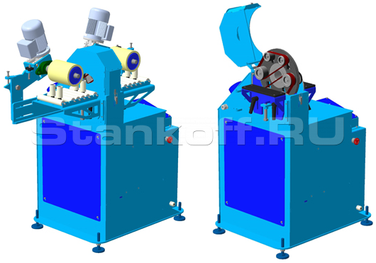 Станок для шлифовки и полировки труб, прямых и изогнутых деталей круглого или овального сечения из дерева,черной и нержавеющей стали, алюминия, меди и других материалов. Может применяться на любом производстве для обработки металлических деталей прямой и изогнутой формы.