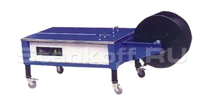 Модель идеально подходит для больших или тяжелых продуктов, корпус машины выполнен в напольном исполнении. Что позволяет упаковывать габаритные коробки и упаковки, бытовая техника , пиломатериалы, стройматериалы. В машине установлена система автоматического отключения, которая позволяет экономить электроэнергию. Натяжение ленты можно регулировать от 10 до 450 Н. Машина автоматически производит цикл затяжки и сварки ленты.