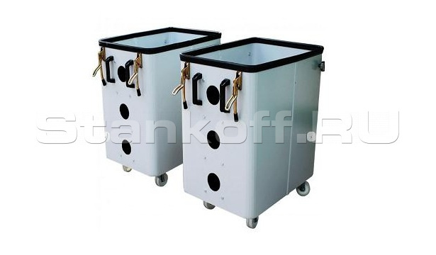 Удобство утилизации пыли и отходов с помощью металлических выкатных бункеров с ручками.